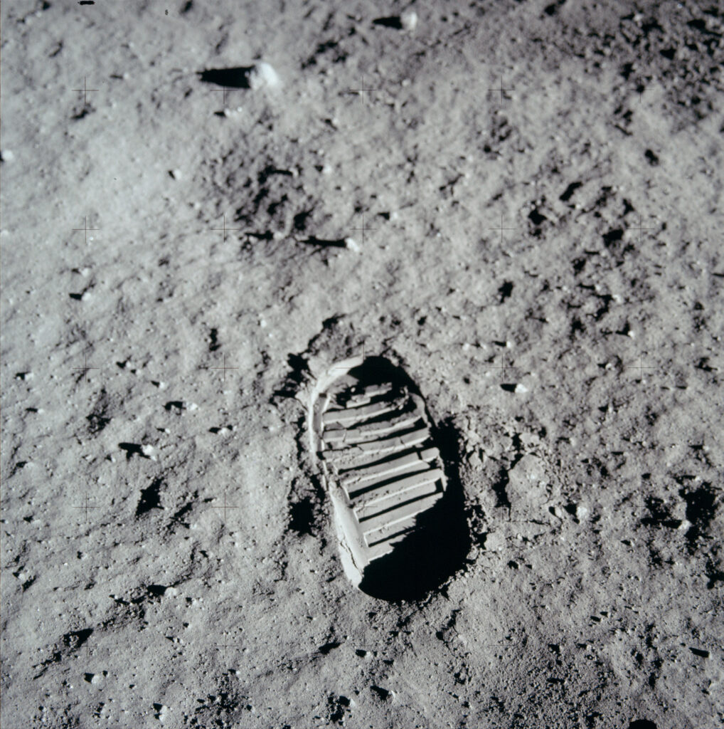「これは一人の人間にとっては小さな一歩だが、人類にとっては偉大な跳躍だ」という歴史的な名言とともに、人類が初めて地球以外の天体に足跡を刻んだ瞬間です。