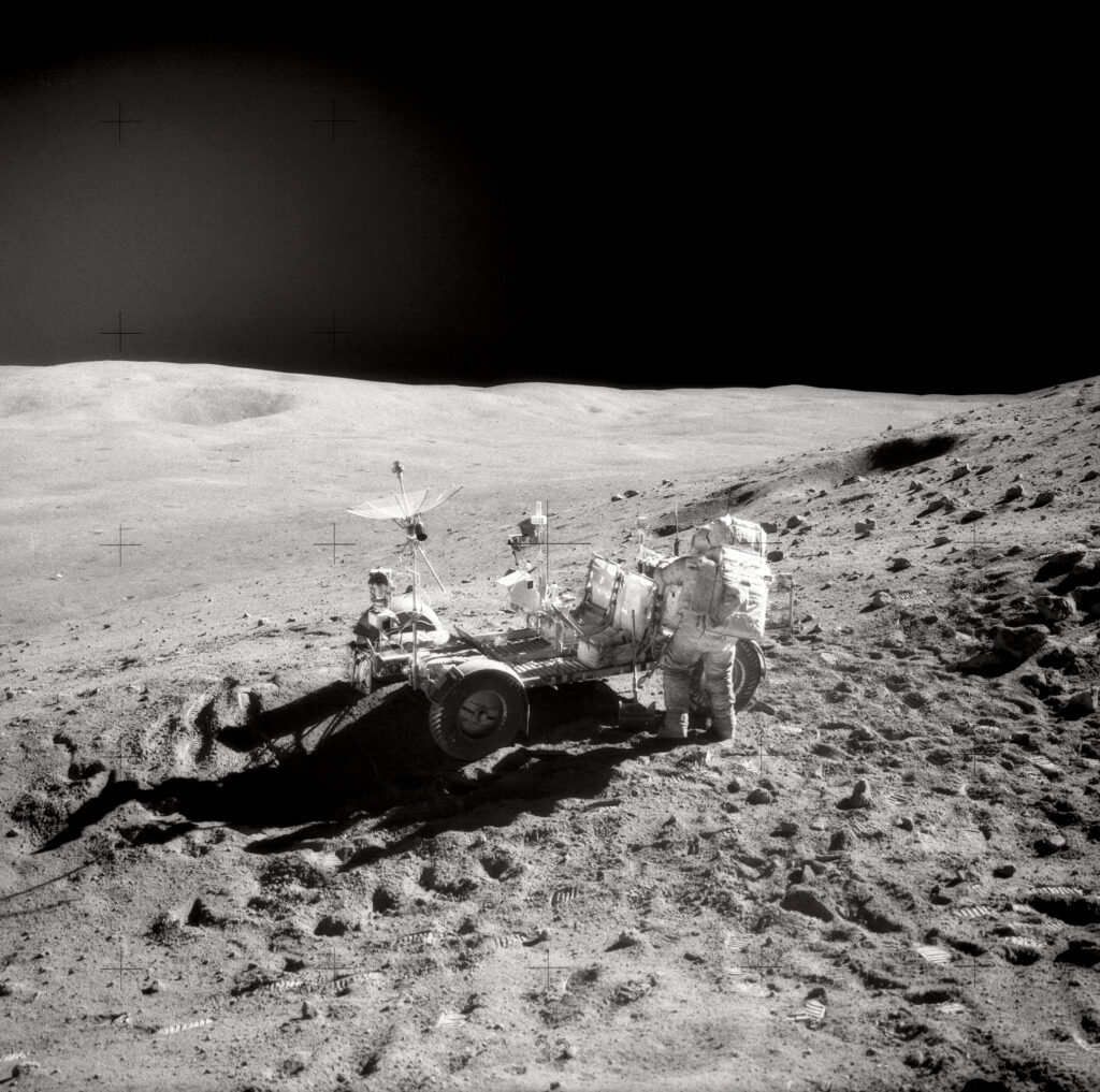 月面車の存在によって、彼らは宇宙服の生命維持装置の限界を気にすることなく広範囲を移動し、起伏に富んだ地形で効率的に科学的データを集めることができました。