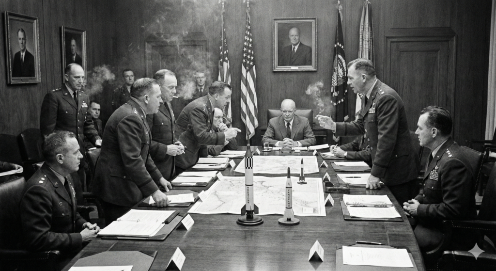さらに事態を複雑にしたのが、軍部内での激しい縄張り争いです。 当時、NASAのような統一された宇宙機関は存在せず、陸軍、海軍、空軍がそれぞれ独自にミサイル開発を進めていました。