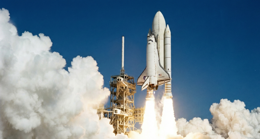 アポロのサターンVロケットとは違う、固体燃料ロケット特有の「バリバリ」という炸裂音とともに、コロンビア号は空へ跳ね上がりました。 その振動は予想を遥かに超えていました。コックピットの計器は激しく揺れ、ジョン・ヤングの心拍数は130を超えました。しかし、機体は無事に宇宙空間へと到達しました。