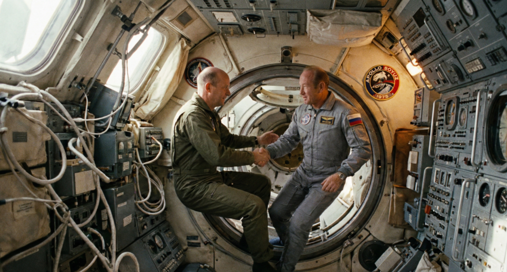 **「宇宙での握手(Handshake in Space)」**の映像は世界中に生中継されました。かつて互いの喉元にミサイルを突きつけ合い、血眼になって一番乗りを競い合った二つの大国が、宇宙というフロンティアで手を結んだのです。