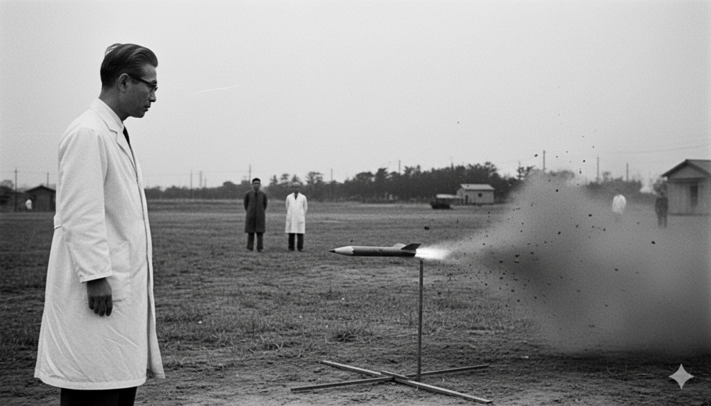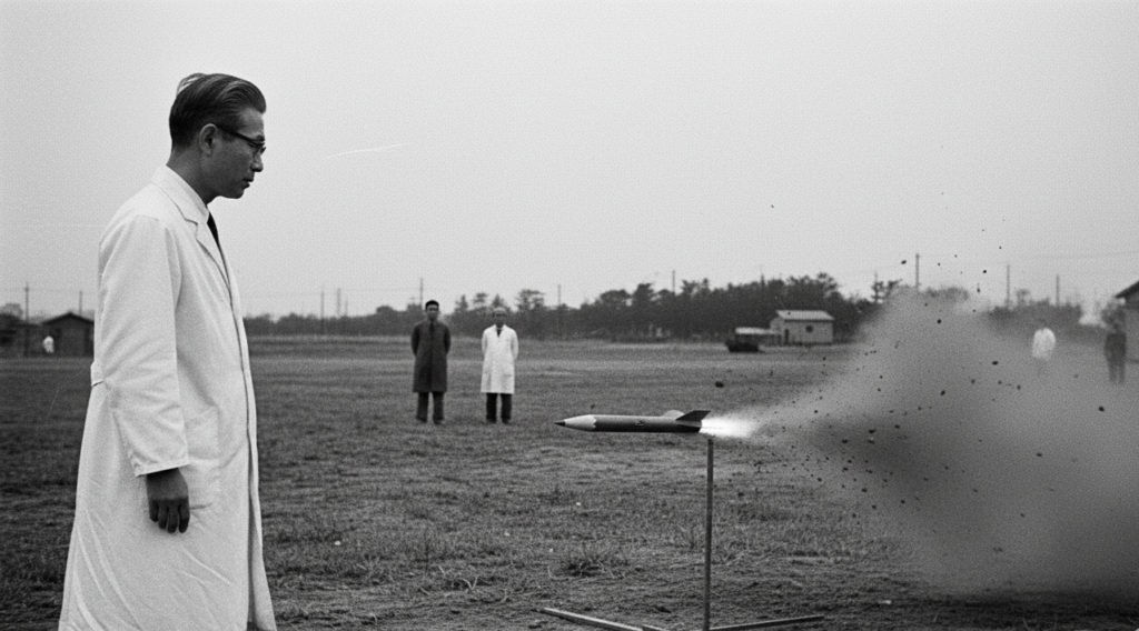 開発を率いたのは、「日本の宇宙開発の父」と呼ばれる 東京大学生産技術研究所の糸川英夫(いとかわ ひでお)博士です。 元々、戦闘機「隼(はやぶさ)」の設計に関わっていた航空工学者でしたが、 戦後の航空禁止令が解けた後、 「これからは宇宙の時代だ」と予見し、 脳波の研究からロケット開発へと転身した異色の天才でした。
