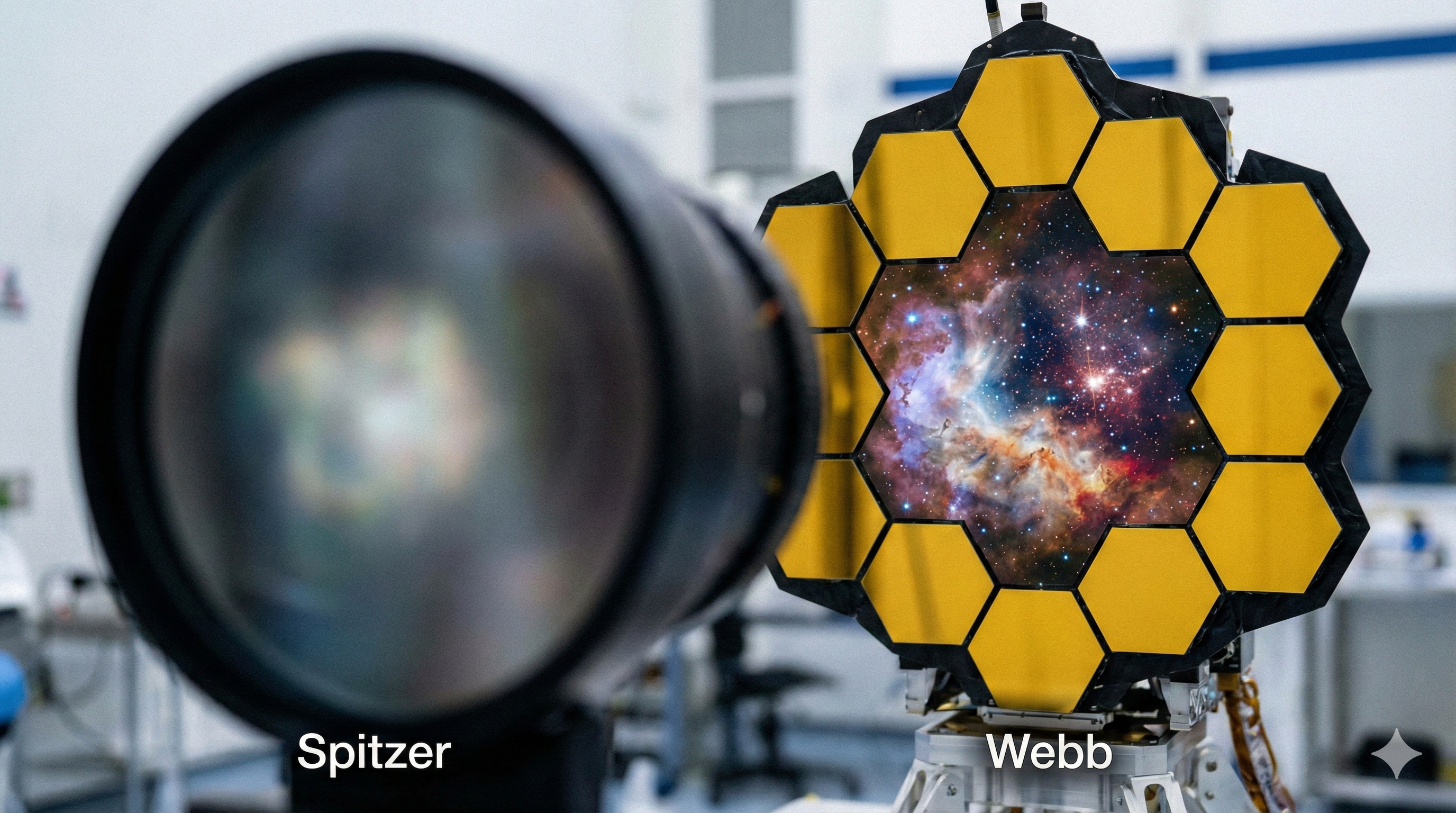 かつて、 NASAの「スピッツァー宇宙望遠鏡」も、 この領域を観測しました。 しかし、 当時の技術では、 「いて座C」はぼんやりとした光の塊にしか見えませんでした。 それを「視力」に例えるなら、 視力0.1の状態で夜景を見ていたようなものです。