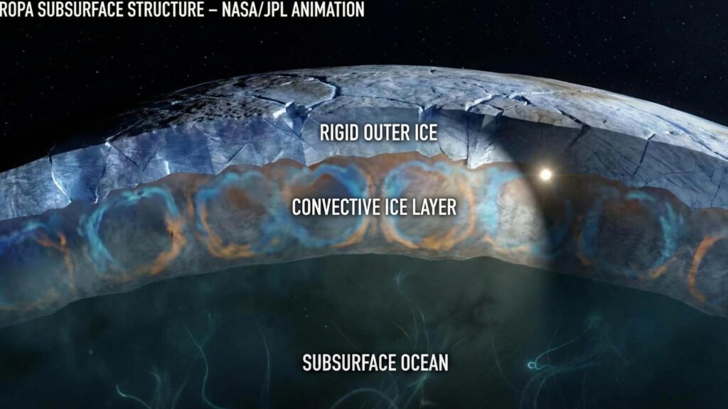 厚い氷の殻は、過酷な宇宙空間の放射線から内部の海を守る強力な盾として機能しているのです。