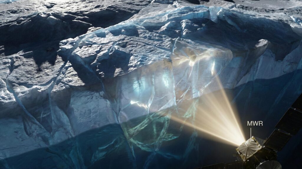 2022年9月にジュノーがエウロパへフライバイ(接近通過)した際、搭載されているマイクロ波放射計(MWR)が氷の殻の内部を観測しました。