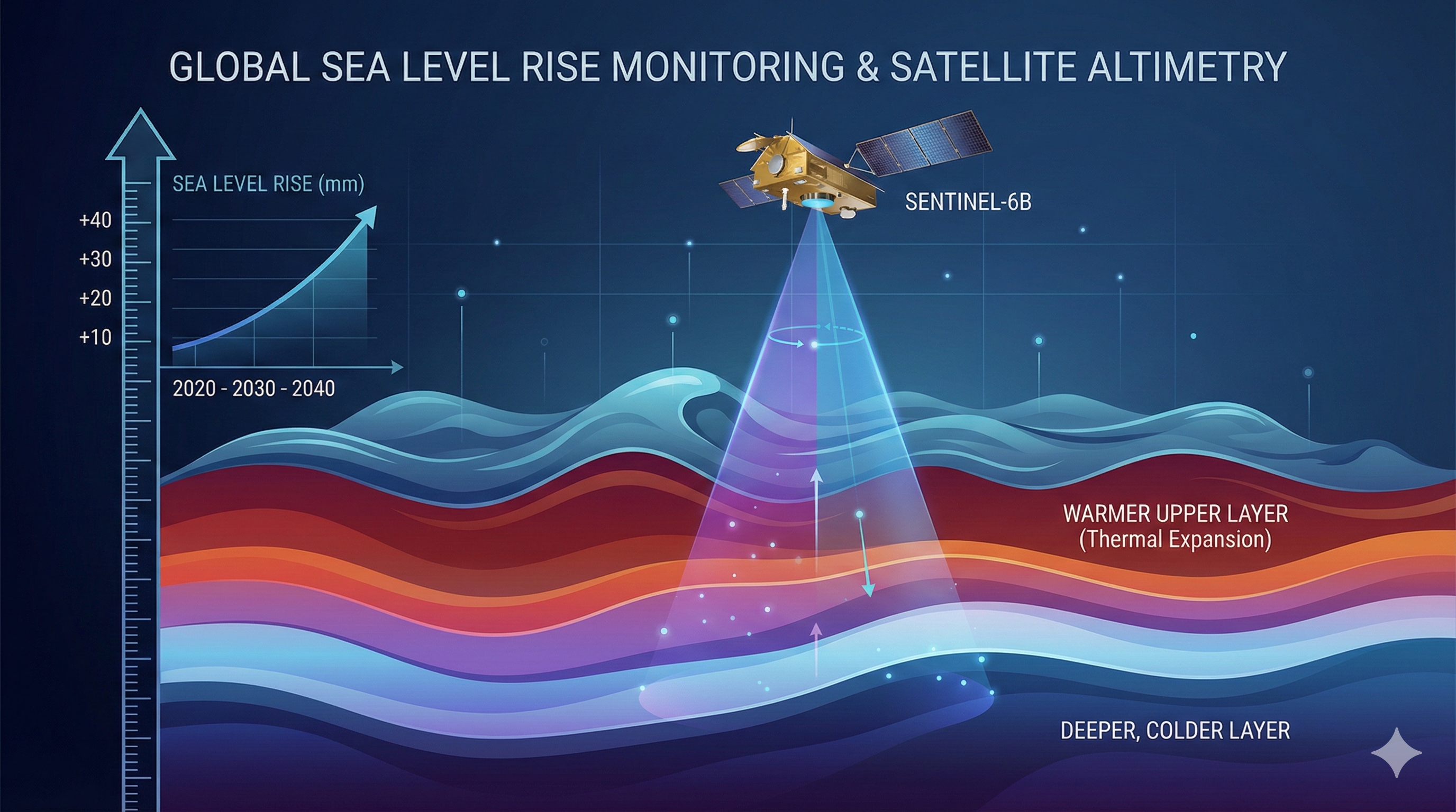 - 合成開口レーダー(SAR):衛星が移動することを利用し、小さなアンテナでもあたかも巨大なアンテナで観測したかのような高解像度データを得る技術。Sentinel-6Bでは、これを高度計に応用している点が新しい。